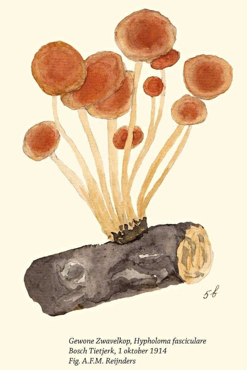 Het meegenomen materiaal werd dan in de rest van de week bestudeerd. gedroogd en in zijn herbarium opgeborgen. Als waardering voor zijn veldstudies in de rivierkleibossen schonk de Nederlandse Mycologische Vereniging hem een aquarel van kleurrijke paddestoelen uit het rivierengebied. Mede door zijn veldstudies en het vervolg daarop door anderen. wordt er nu door de provincie Utrecht een actief beschermingsbeleid ontwikkeld. Het zijn niet alleen deze gebieden die zijn belangstelling hadden. In de vakanties was hij ook veelvuldig te vinden in vergelijkbare gebieden, vooral in Duitsland. In "Zeitschrift fur Mykoiogie wordt de eerste vondst voor Duitsland vermeld van de paddestoel Chaetocalathus Dit is een publicatie van M. Matzke en B. Senn-lrlet en deze soort is vastgesteld op grond van een collectie uit het herbarium van Dr. A.F.M. Reijnders!